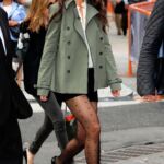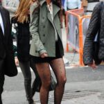 La bellissima Katie Holmes è qui ritratta probabilmente su un set (o almeno così pare), e l’abbigliamento è davvero di quelli da leccarsi i baffi! Pantaloni corti neri, décolleté nere e collant neri a pois. Cosa rende queste foto ancora più uniche? Il fatto che ce ne siano un paio, probabilmente riprese la sera in albergo, dove Katie ha tolto le scarpe!